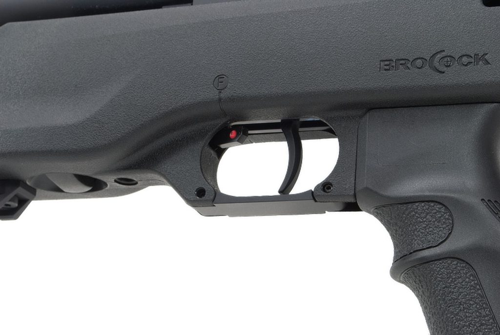 The tactical Brocock Commander HiLite XR air rifle with its black design, Kevlar cartridge and a collapsible gunstock with pistol grip benefits from the mutual cooperation of Daystate and Brocock. The Brocock Commander HiLite XR Brocock has an improved and patented “Slingshot Hammer” system, which guarantees better air processing and lower consumption. This system, along with the Huma pressure regulator (of Dutch production), improves the shot consistency, making the rifle far more precise than its competition.
