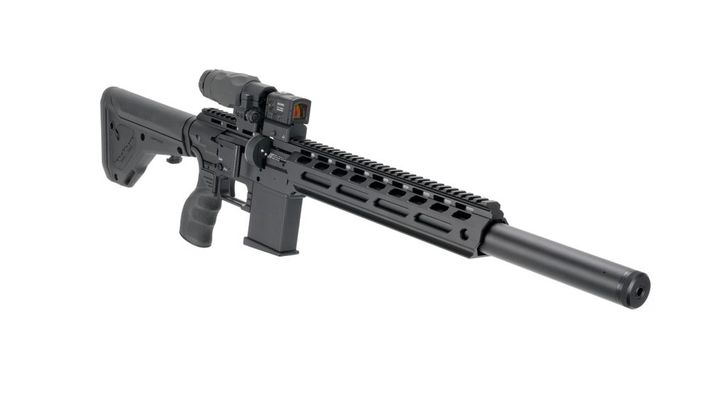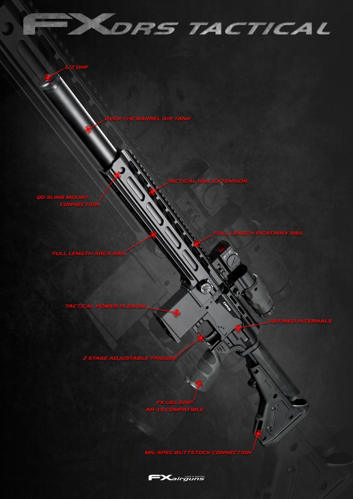 A v tomto duchu se nese i nová DRS Tactical. Kombinuje vyladěný design s praktickými prvky jako je Arca lišta pro bipod, dlouhá RIS lišta pro jakoukoli kombinaci optik nebo kolimátorů a to vše na těle připomínající platformu AR-15. Výborné rozhodnutí bylo udělat montáž pažby a rukojeti kompatibilní s Mil-spec standardy. Cokoliv dáte na takovou AR-15 dáte i na tuto vzduchovku.