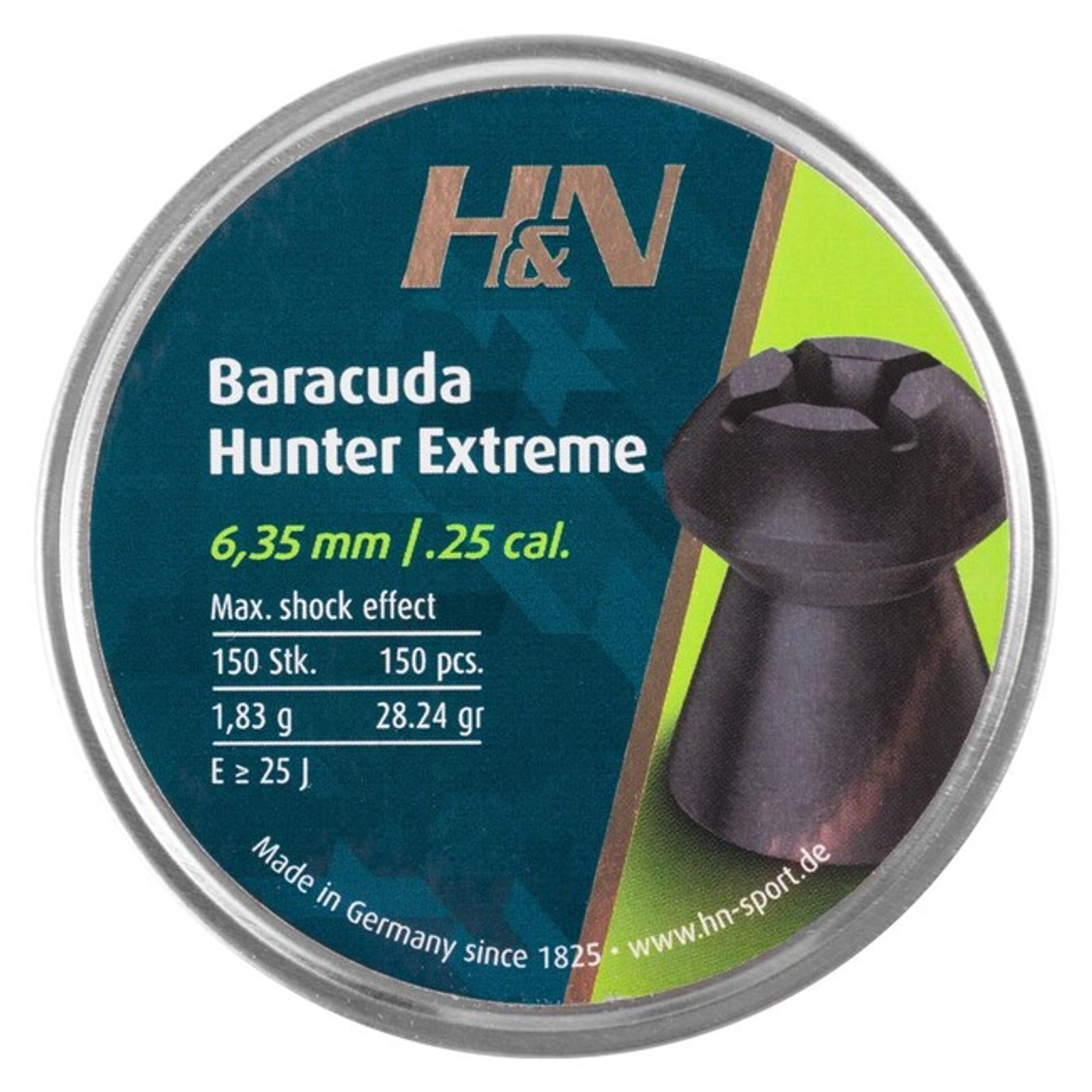 H&N Baracuda Hunter Extreme 6.35mm airgun pellets, 150 pieces