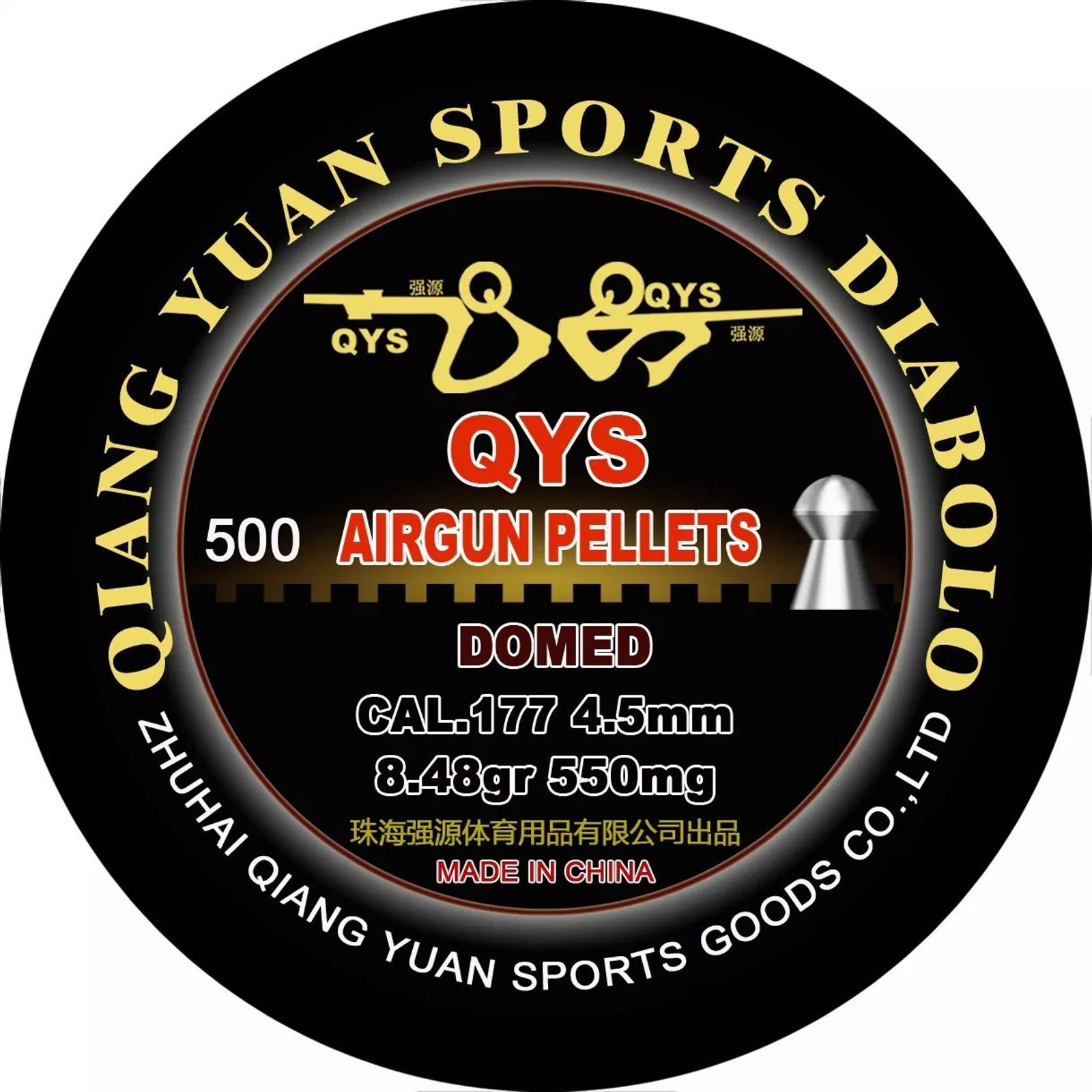 The QYS (Qiang Yuan Sports) company specialises on premium airgun pellets since 1994. The QYS airgun pellets are at the moment the most precisely made pellets on the market. Thanks to the patented production process and special production technology, these pellets have practically zero weight deviations and are used even by the Olympic shooters, e.g. in year 200 Olympic Games in Sydney, where they had amazing results and won 10 golden, 4 silver and 5 bronze medals.