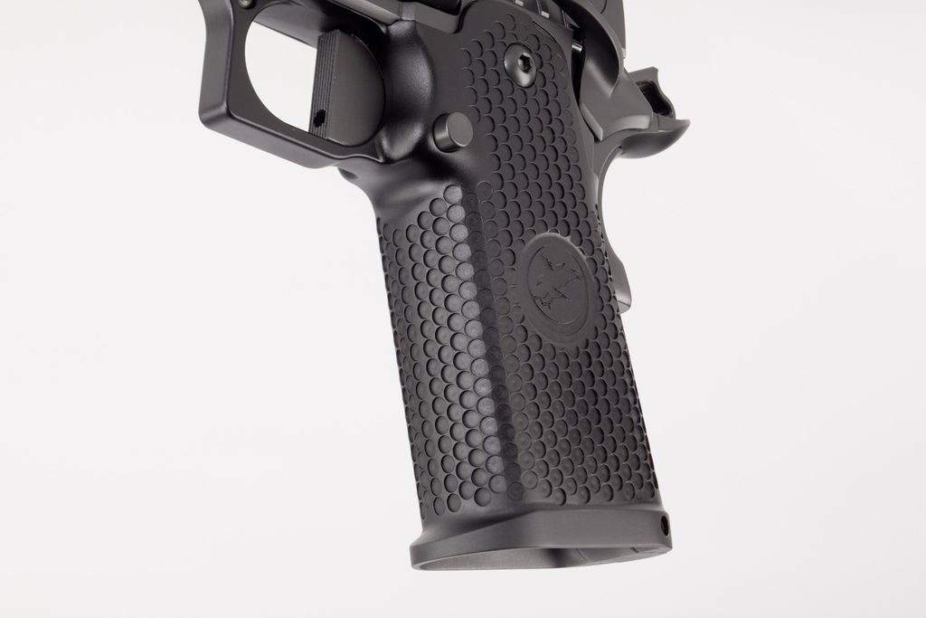 New for 2023, we have just released an all-new aggressive grip texture for Nighthawk Custom double stack pistols. This aggressive grip is designed to offer a rock-solid grip on the pistol in all environments and situations. Just like the standard grip texture, the new aggressive grip is fully machined from a billet of aluminum. It is then anodized which will give you a lifetime of performance and durability. You can be certain your grip will be secure with our new aggressive grip treatment.