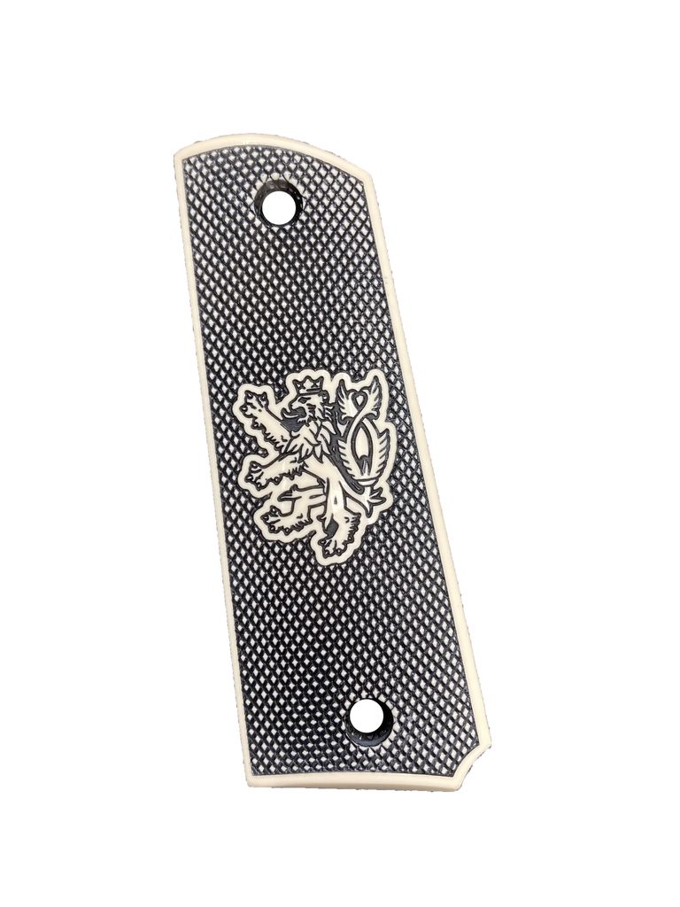 Střenky tureckého výrobce KSD pro pistole 1911 Govt. & Commander FullSize modely FIT, Les baer, Springfield, Kimber akrylát slonovina smybol CZ.